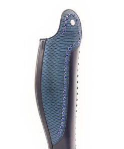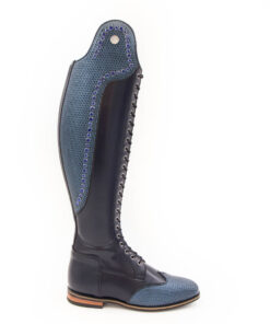 Incredibly beautiful dressage boots made from blue leather, enhanced with genuine Swarovski® crystals in blue. Accents in our special edition leather “Metallic Blue Diamonds”. The crystals are set in two different sizes and create luxurious, sparkling accents.